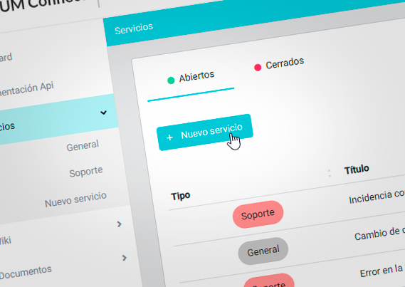 Activa el mòdul de serveis per consultar i gestionar projectes, incidències, peticions, tasques... Permetent, a més, crear converses i adjunts associats a cada servei.